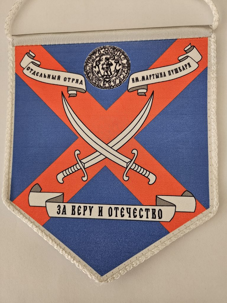 Zástava vojenskej jednotky pomenovanej po ukrajinskom kozáckom vodcovi M. I. Puškarovi