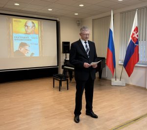 27. marca 2026 sa v Ruskom centre vedy a kultúry v Bratislave konalo slávnostné otvorenie výstavy „Dvojitý portrét na pozadí storočia“ venovanej výročiam dvoch vynikajúcich sovietskych hudobných skladateľov – Sergeja Prokofieva a Dmitrija Šostakoviča. (slovakia.mid.ru)
