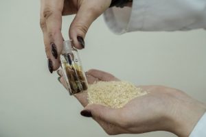 Образец сульфатированного полисахарида и опилки ели. Фото Анастасии Тамаровской / ФИЦ КНЦ СО РАН